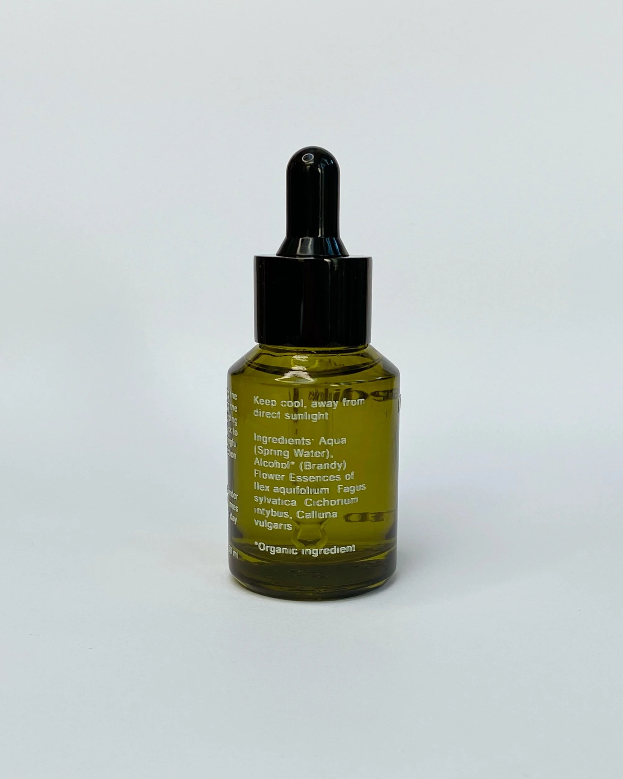 Aqua (Spring Water), Alcohol (Brandy*) or Glycerine*, Flower Essences of Cichorium intybus (Chicory), Fagus sylvatica (Beech), Calluna vulgaris (Heather), Ilex aquifolium (Holly).